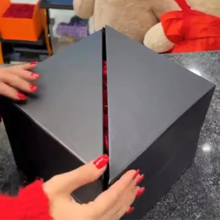 Red Rose Heart Box: A stunning heart-shaped box filled with fresh, fragrant red roses, symbolizing...