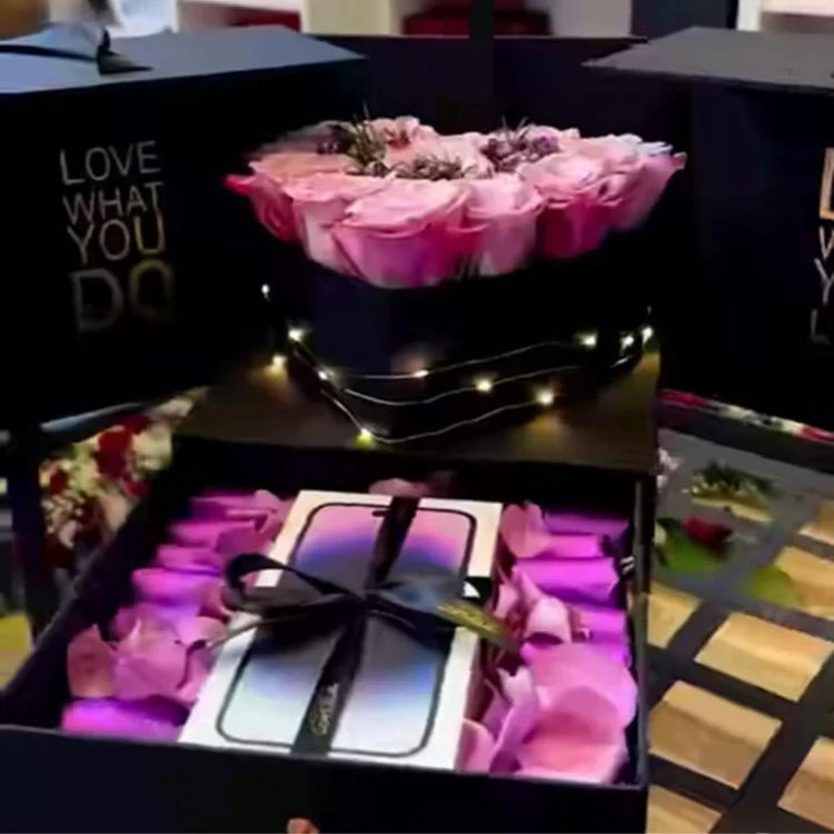 Lovely Gift for Wifey – Flower Heart in a Box with Chocolate Drawer and Balloons...