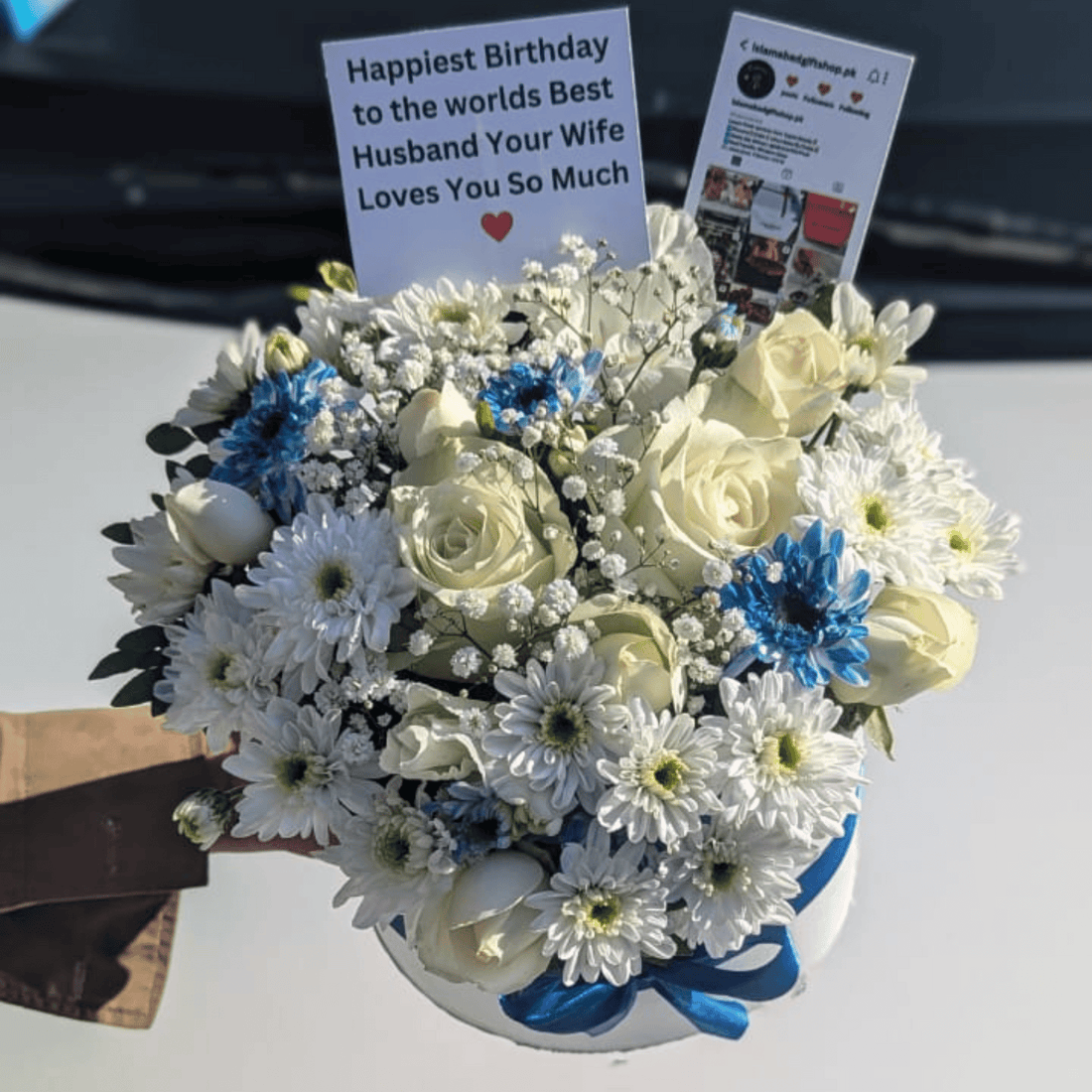 What’s Inside: 🌸 Premium Imported Flowers A carefully designed floral arrangement featuring: Roses (white, blue,...