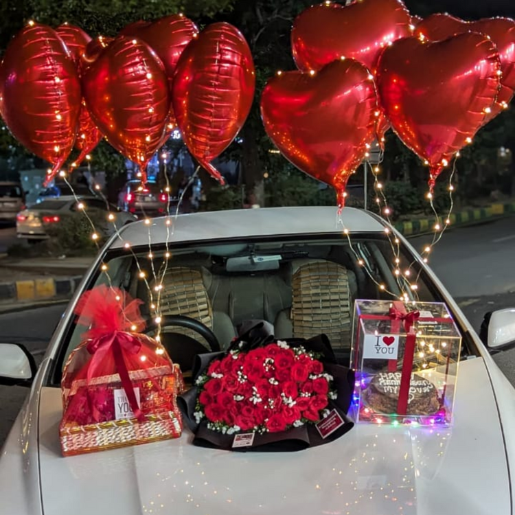 Celebrate love with a romantic setup designed for couples on Valentine’s Day. A stunning bouquet...