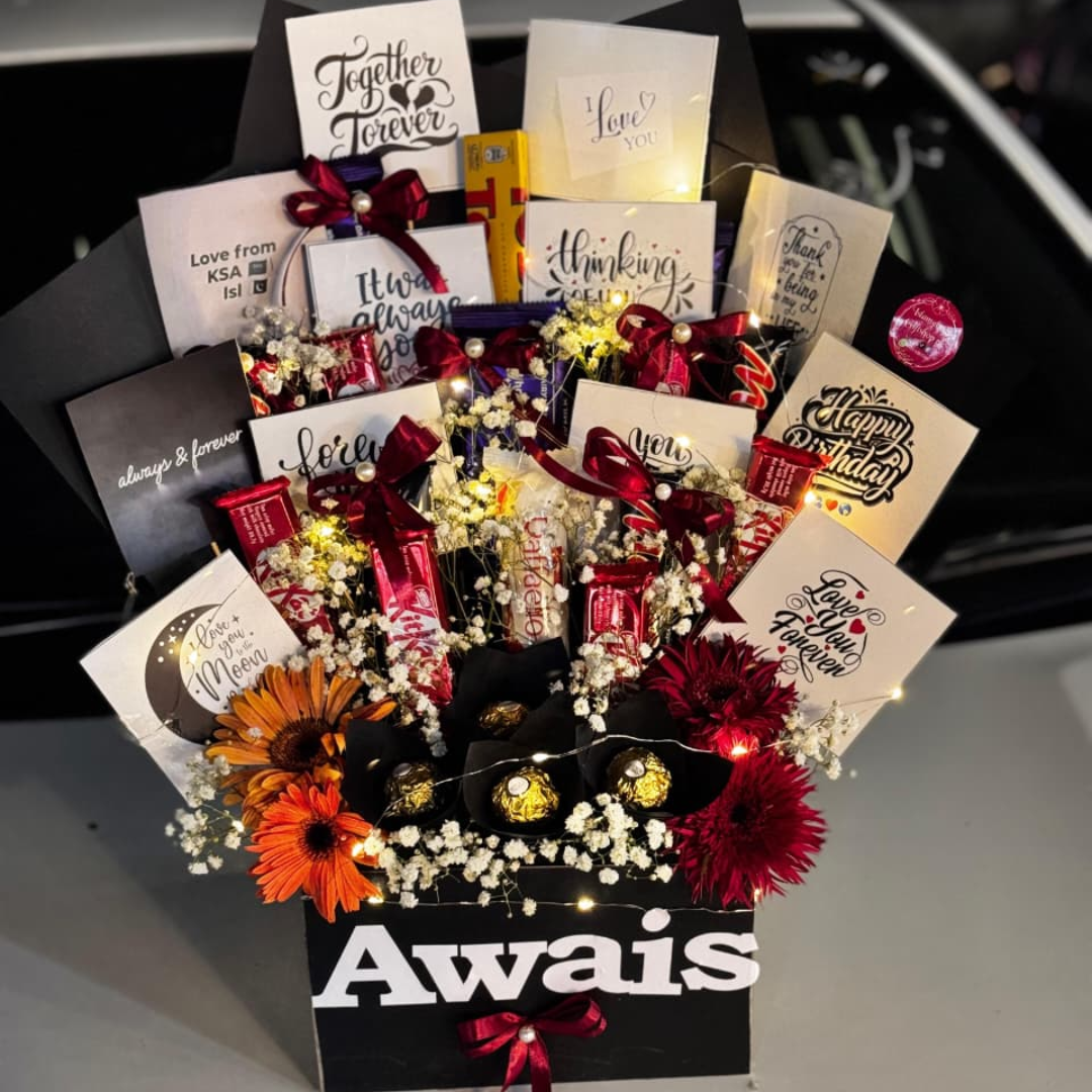 Well-Arranged Flower & Chocolate Box with Love Notes – Valentine Gift for Her