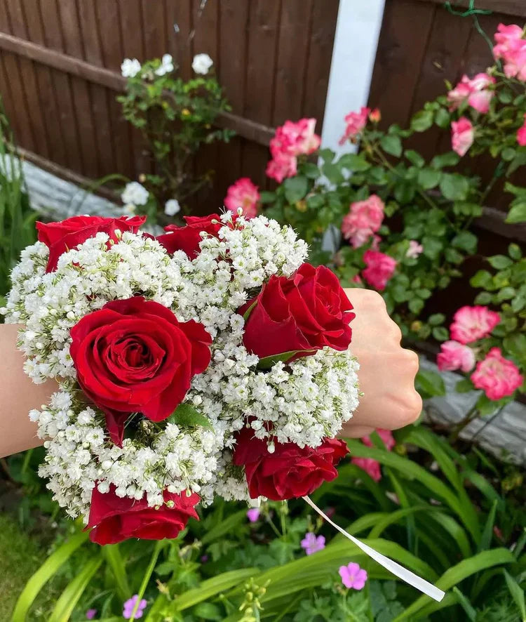 A delicate and elegant gajra made with fresh white roses, chrysanthemums, and baby's breath. Perfect...