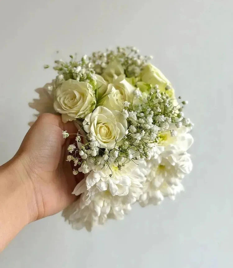 Elegant Baby’s Breath White Gajra – Timeless Floral Accessory for Special Occasions Design: Crafted with...