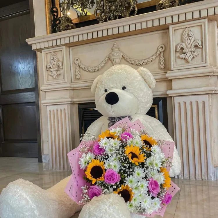 - The combination of the oversized teddy and luxurious flowers makes this a truly memorable and thoughtful gift.