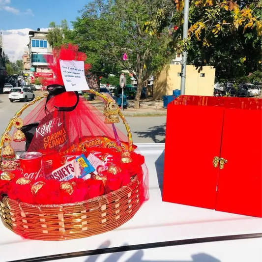 Chocolate Basket & Mini Red Surprise Box – A Sweet & Exciting Gift