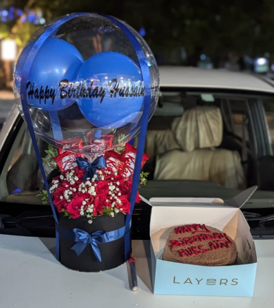 Fresh FlowersBox with KitKats Customized printed Baloon Candle &Cake for him/her