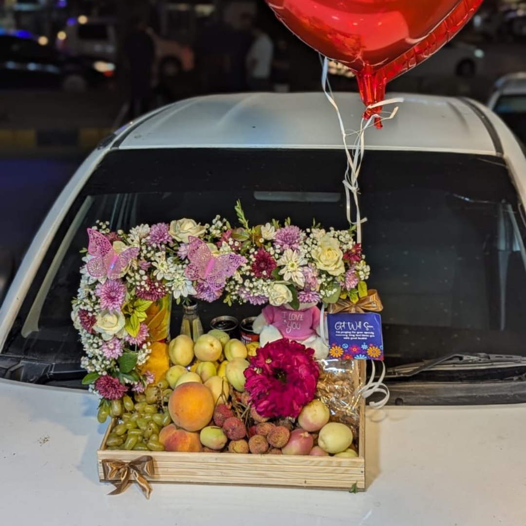 Fresh Fruit Basket with Gajray & Heart Balloons β A Gift Full of Love & Freshness