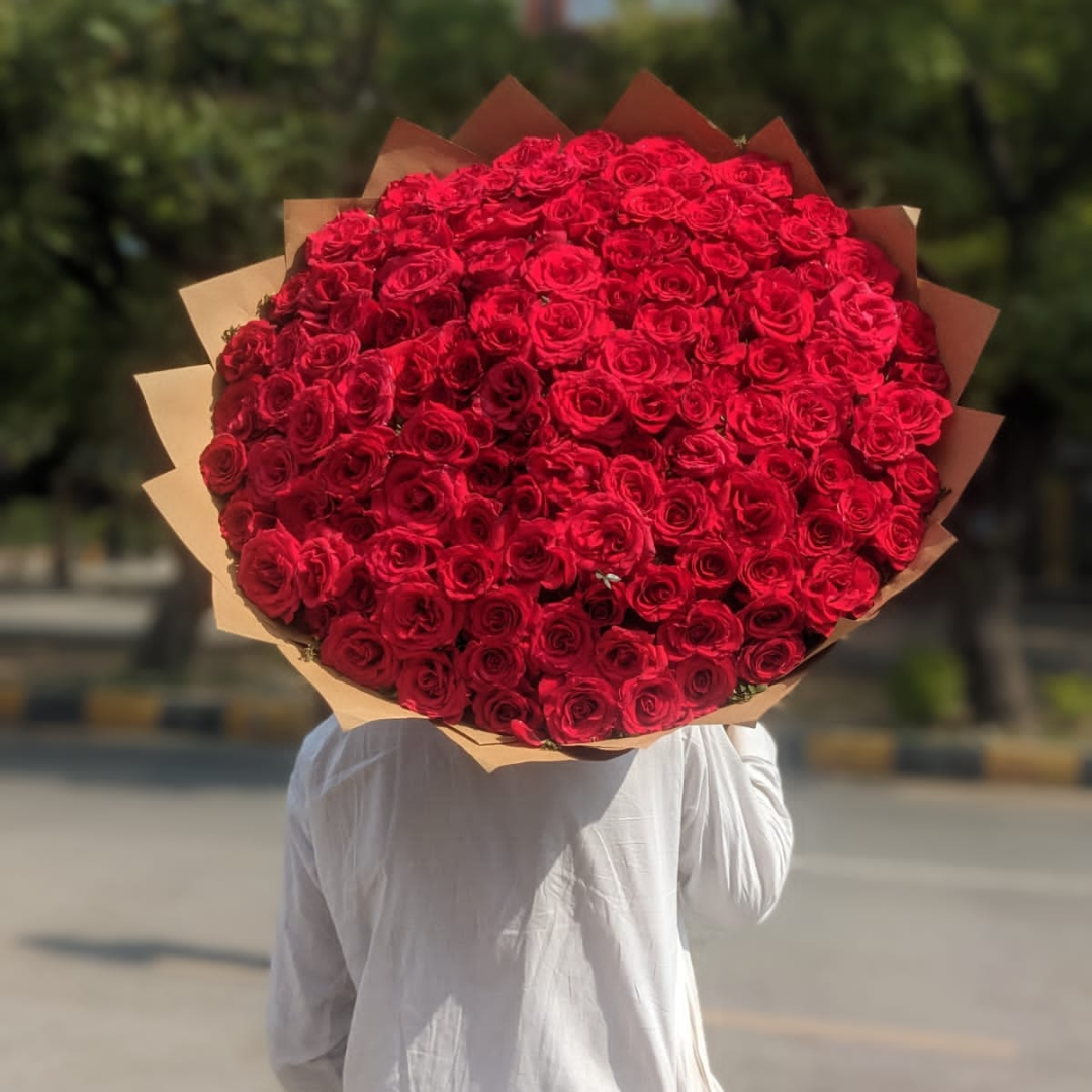 - 50 Premium Red Roses: A lavish bouquet of 50 freshly cut red roses, symbolizing deep love, passion, and admiration.