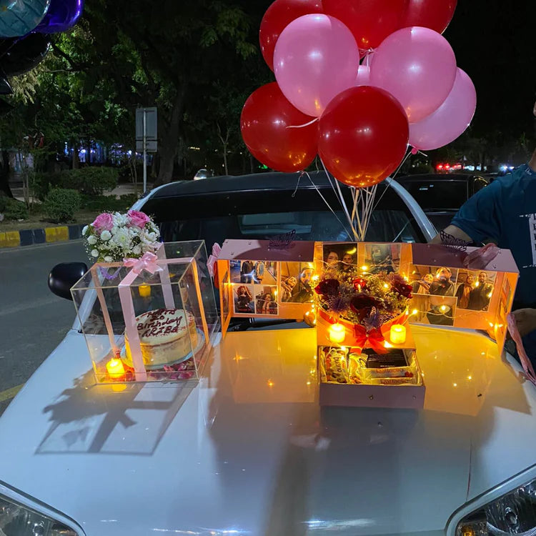 - The display is completed with balloons that enhance the festive atmosphere and joy of the gift.