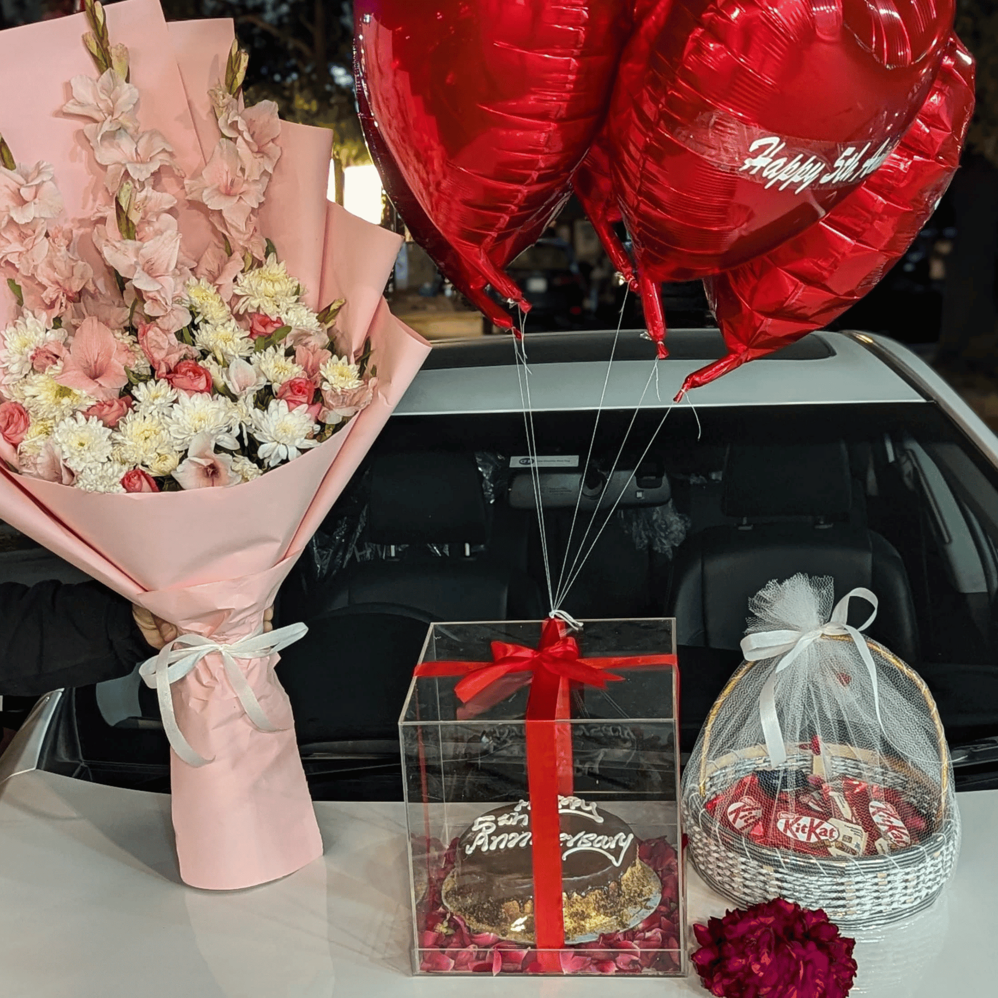“Royal Grace Hamper” – Flowers, Cake Box, Balloons, Chocolates & Gajray for Her