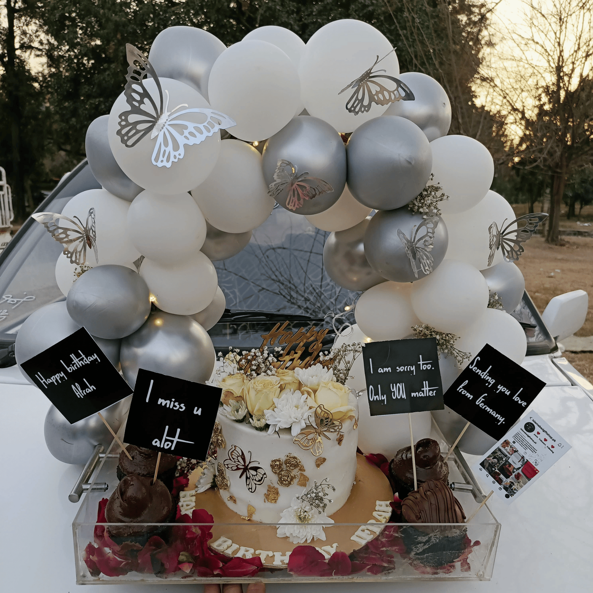 “Silver Moments for Him” – Balloon & Cake Tray Combo
