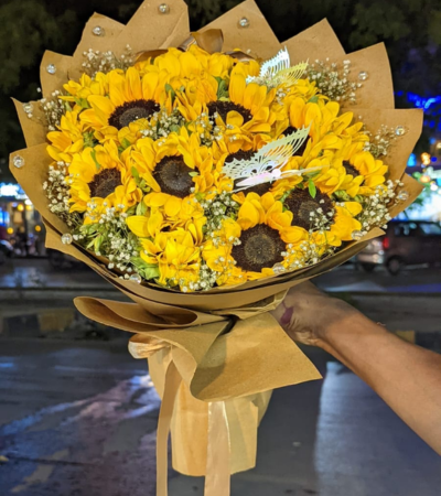 Brighten her day with the natural warmth of sunflowers! This radiant bouquet is full of joy, energy, and positivity — just like a mother’s love. Wrapped in elegant paper with satin ribbon, it's a beautiful way to say “You are my sunshine.”