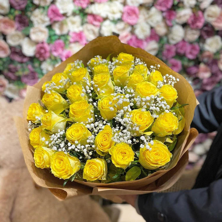 - delightful bouquet of fresh yellow roses, symbolizing friendship, joy, and warmth.
